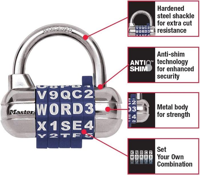АНУ үйлдвэрэлсэн MASTER LOCK-хосолсон түгжээ нь ган төмрөөр хийгдсэн бат бөх удаан эдэлгээтэй. Та энэхүү цоожны нууц үгэнд үсэг болон тоог хольж оруулах боломжтой бөгөөд дугуй, албан тасалгааны шүүгээ, агуулахын үүд хаалганд ашиглах боломжтой.