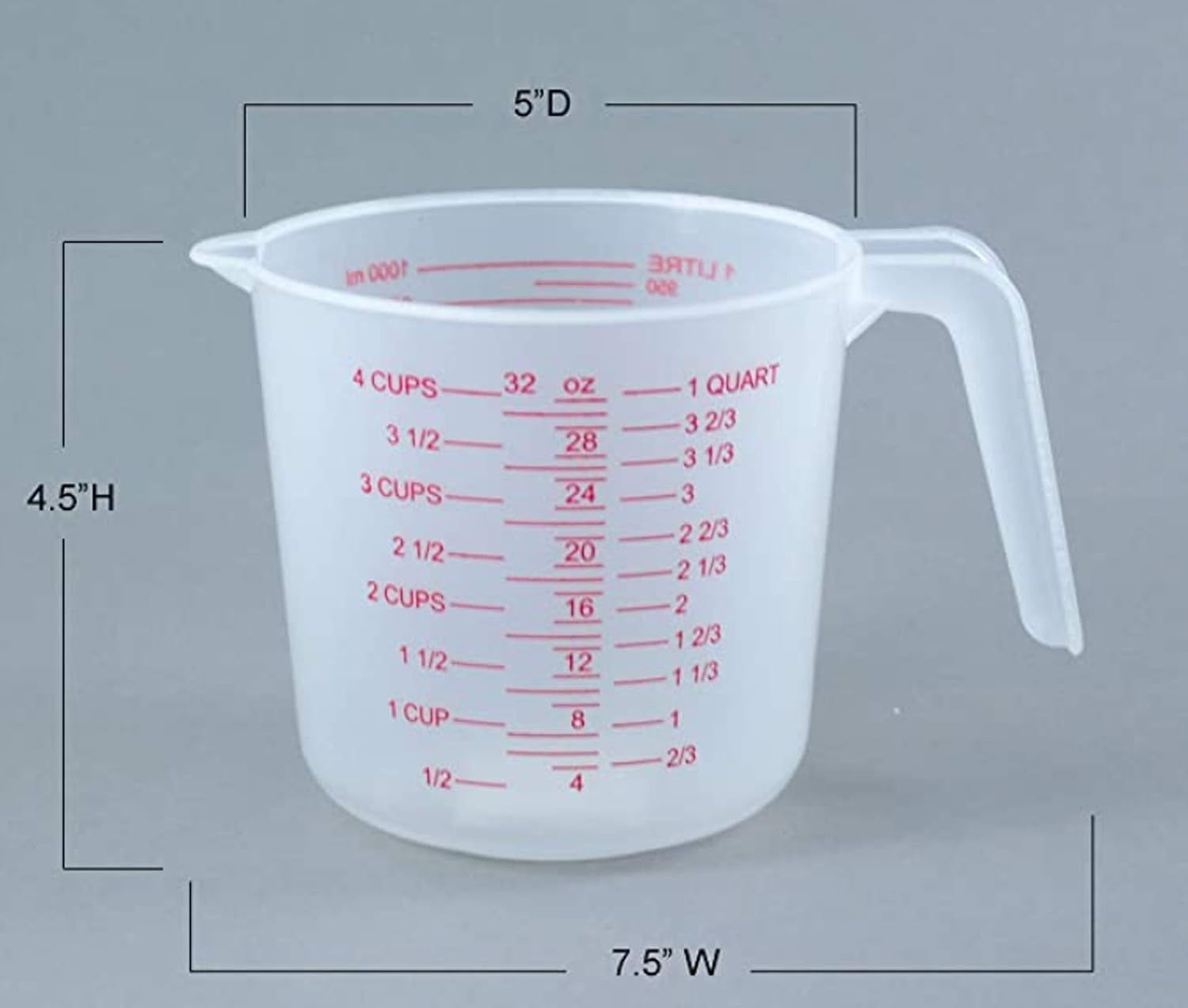 MEASURE брэндийн хуванцар хэмжигч сав нь 946мл бөгөөд бүх төрлийн шингэн зүйлийг хэмжин ашиглах боломжтой.Автомат угаагч болон хөлдөөж, богино долгионы зууханд хийн ашиглах боломжгүй.