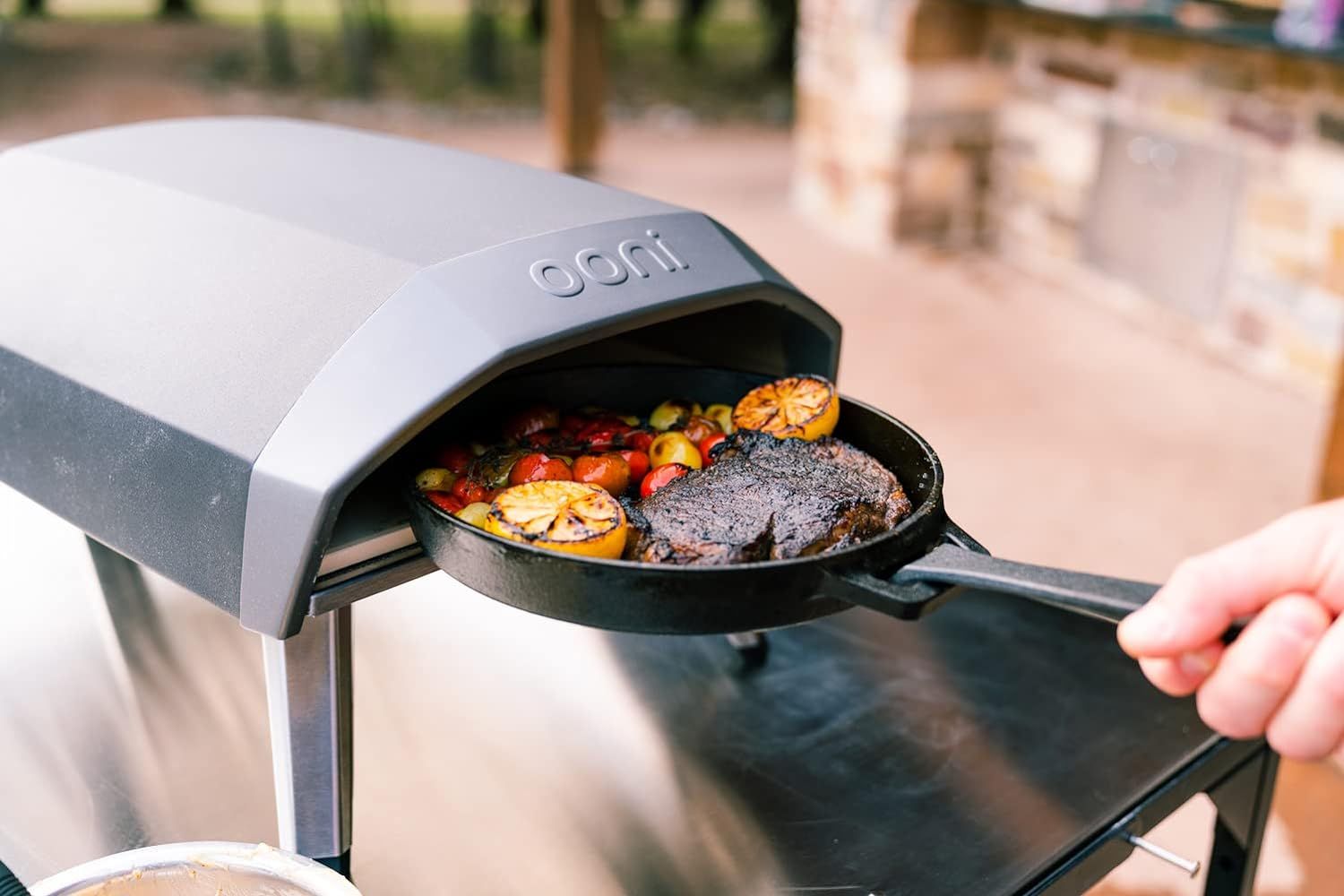 Ooni Koda брэндийн 12 инчийн хийн түлшээр ажилладаг гадаа пицца зуух нь 60 секундын дотор пиццаг бэлэн болгодог. Эвхэгддэг хөлийг эргүүлж, чулуун жигнэх хавтанг оруулаад хийн саванд холбоно.