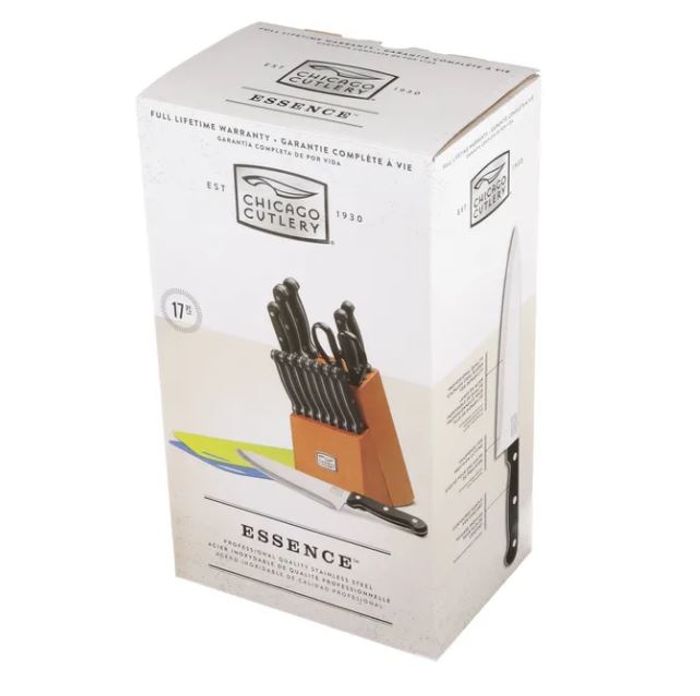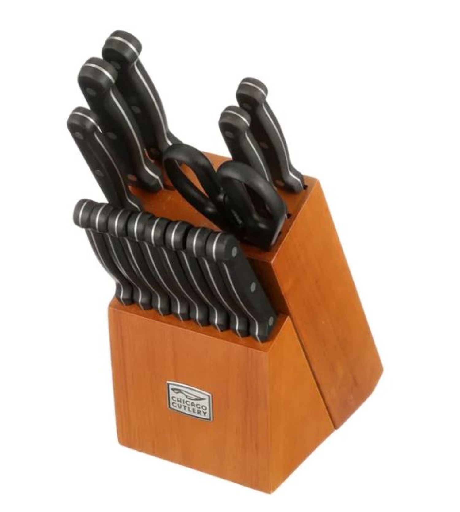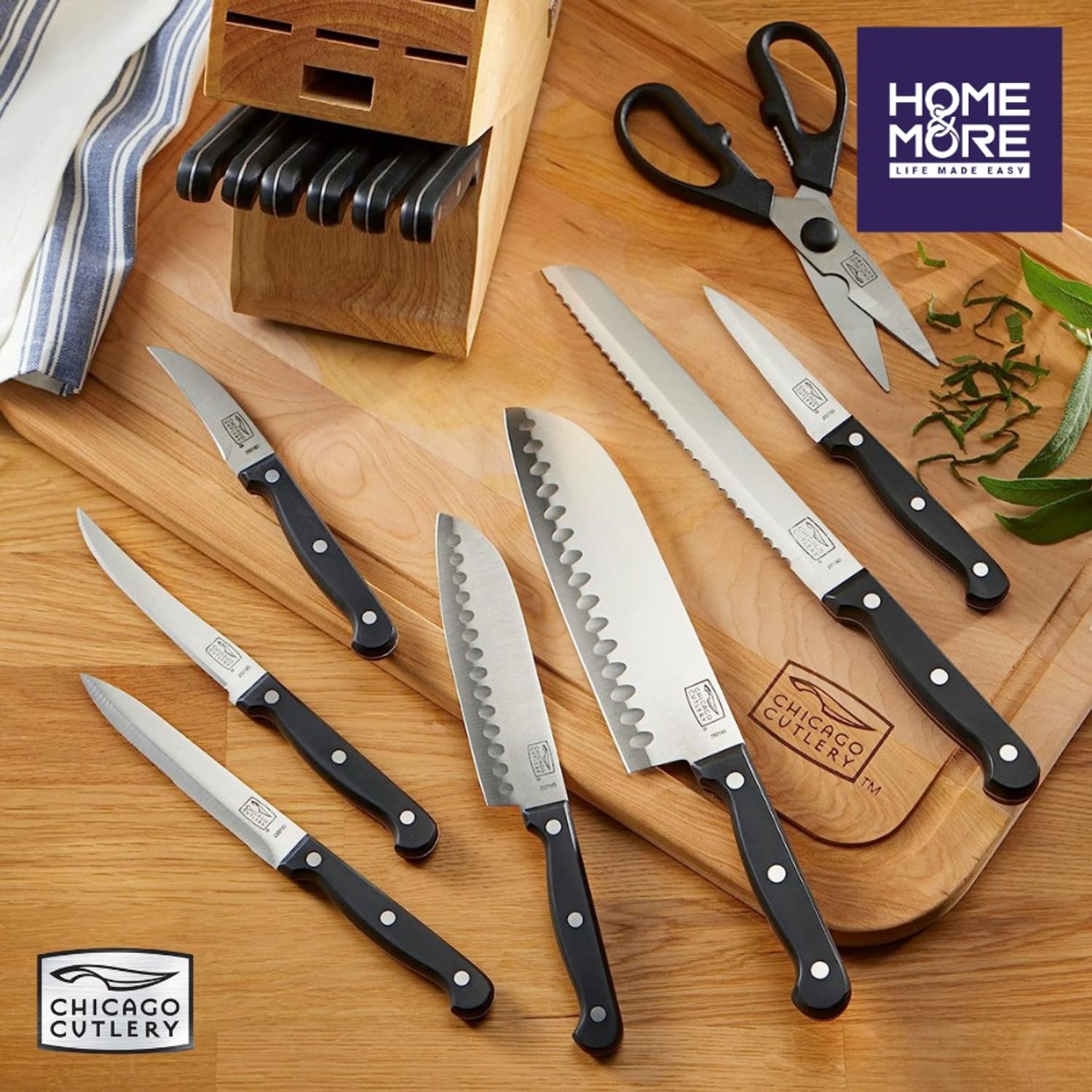 CHICAGO CUTIERY брэндийн хутагны ком нь зэвэрдэггүй ган материалтай . ган ир нь илүү бат бөх, илүү хатуу, толбо, зэв, цооролтыг тэсвэрлэдэг.