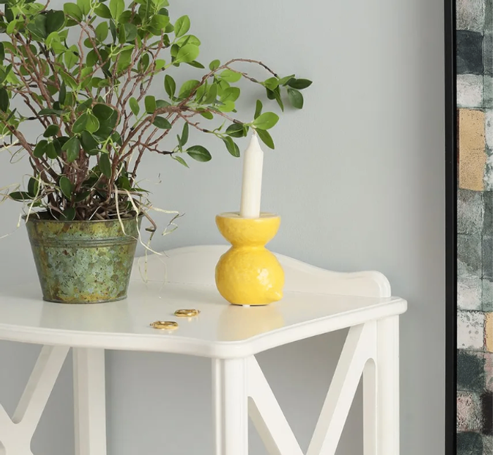 Энэхүү лимон хэлбэртэй лааны суурь нь орон зайг илүү цэгцтэй, гэрэл гэгээтэй харагдуулах гоёмсог чимэглэл юм. Тод шар өнгө нь интерьерийг уйтгартай харагдахаас сэргийлж, шинэхэн өнгө нэмж өгдөг. Хоолны ширээ, тавиур эсвэл зочны өрөөнд байрлуулахад орчныг илүү сонирхолтой, стильтэй болгож, жижиг атлаа хараа татах чимэглэл болно.